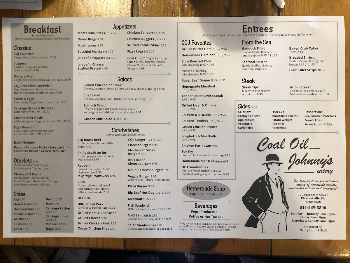 Coal Oil Johnny's Eatery Menu